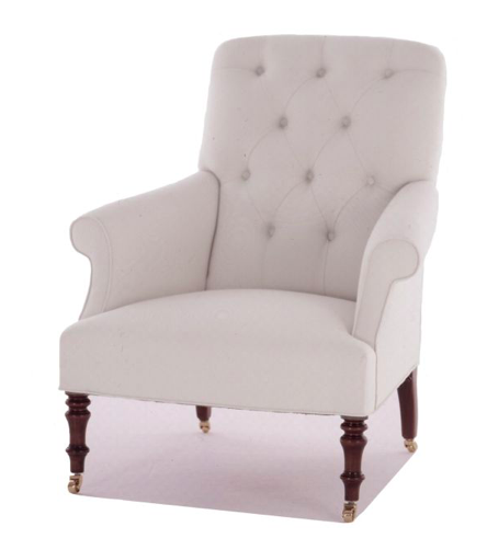 The William IV Armchair features a traditionally upholstered fixed back with deep buttons and a coil sprung fixed seat, ensuring enduring comfort and support. This chair is perfect for those who appreciate traditional construction techniques combined with modern specifications.