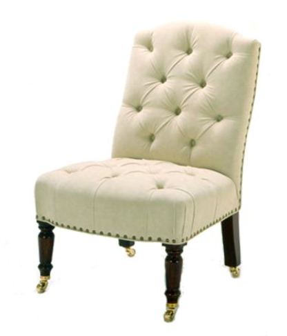 The Hattie Chair, with its delicate and petite design, is a charming addition to your living room or bedroom. Featuring a buttoned back and a fixed seat, this chair is perfect for low-level seating, exuding traditional upholstery craftsmanship with coil springs and nailing detail.